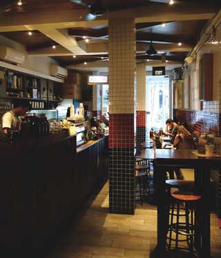 The forerunner for the coffee revolution in this humble neighbourhood is Forty Hands (78 Yong Siak St) that has become a Singaporean institution. Their beans are provided by Common Man Coffee Roasters and the baristas do extensive training, so that you can expect really good coffee where all the right flavours are balanced well. Although you can pop in just for a casual cup, just as I did, there is also a big emphasis on food. For me Forty Hands felt more like a buzzing eatery than a quiet cafe. Their Western-style brunch is as famous as their coffee, but they are also known for offering some of the best tau sar paus (red bean paste bun) in the city. Located on the ground level of an Art Deco inspired block of flats, from outside Forty Hands blends in well with the sleepy residential atmosphere. Yet, inside the decoration is dark and quirky with exposed pipes, dark tiles and urban art works. The space is narrow but it also features a more spacious covered patio at the back. It is not easy to get a table though, and on my two first attempts it was way too crowded and noisy. But when exploring coffee shops in Singapore, a little visit to the coffee revolutionist is worth a wait.