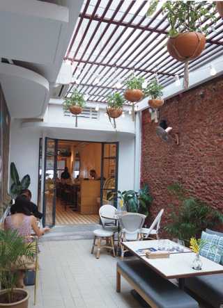 Plain Vanilla Bakery (1D Yong Siak St), a local pickup point for sweet treats has one of the most quaint outdoor terraces in the neighbourhood. Facing the street, the covered terrace is lined with potted and hanging plants as well as charming mint green bicycles with wicker baskets. If you are lucky to get a seat on the terrace, enjoy watching the street life while also benefiting from an aircon. More seating can be found at the back of the cafe as well as on their more simplistic side terrace facing Chay Yan Street. Inside the Scandinavian inspired decor is dominated by whites, pastels and light wooden elements, the focal being their inviting pastry counter. The menu is almost as sweet as their decor, as Plain Vanilla Bakery specialises in cupcakes. They also offer savoury delights such as tarts, fresh sandwiches, and brunches. With a focus on quality, they only use the finest ingredients. If you get inspired by the calm decor you can purchase beautiful crockery and small home items sold by their sister company Plain Vanilla Home.